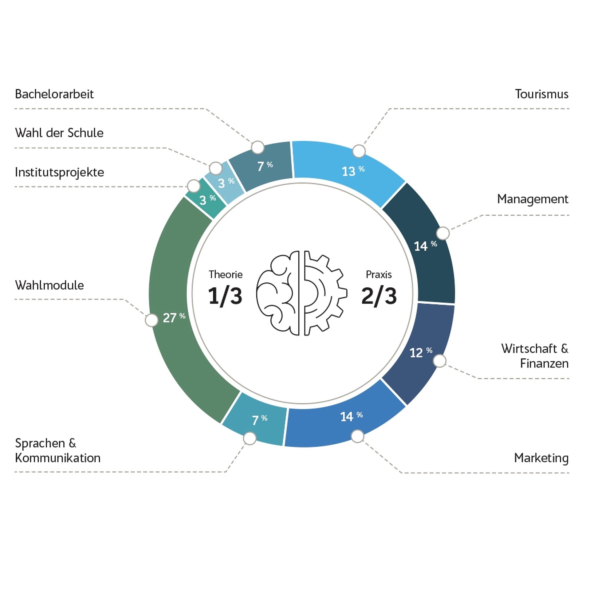 Der Bachelor-Studiengang in Tourismus ist eine moderne, praxisorientierte und mehrsprachige Ausbildung mit zahlreichen Modulen, die die Interaktion in drei Sprachen (Deutsch, Französisch, Englisch) fördert. Er beschäftigt sich mit Tourismus, Verwaltung, Management und insbesondere mit Marketing, Kommunikation, Events, Digitalisierung, Entwicklung von touristischen Angeboten, Nachhaltigkeit und ist dank der Zusammenarbeit mit Unternehmen ausgesprochen praxisorientiert.