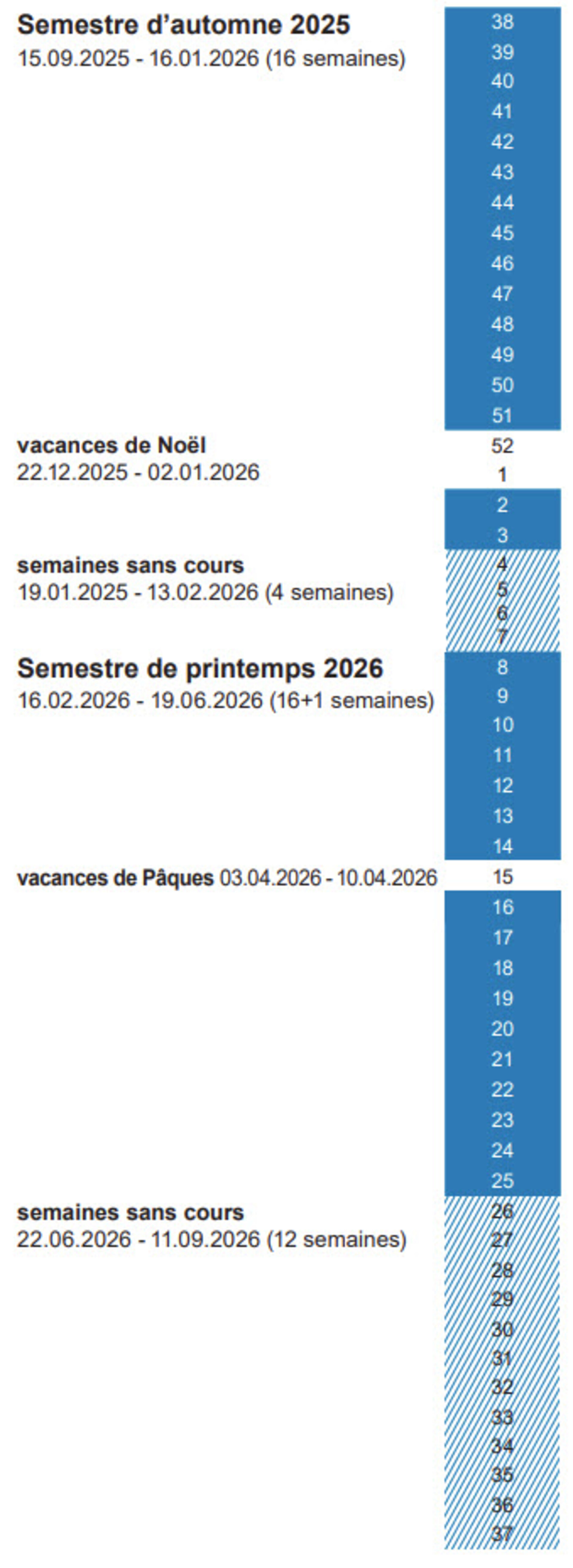 Calendrier académique 2025-2026