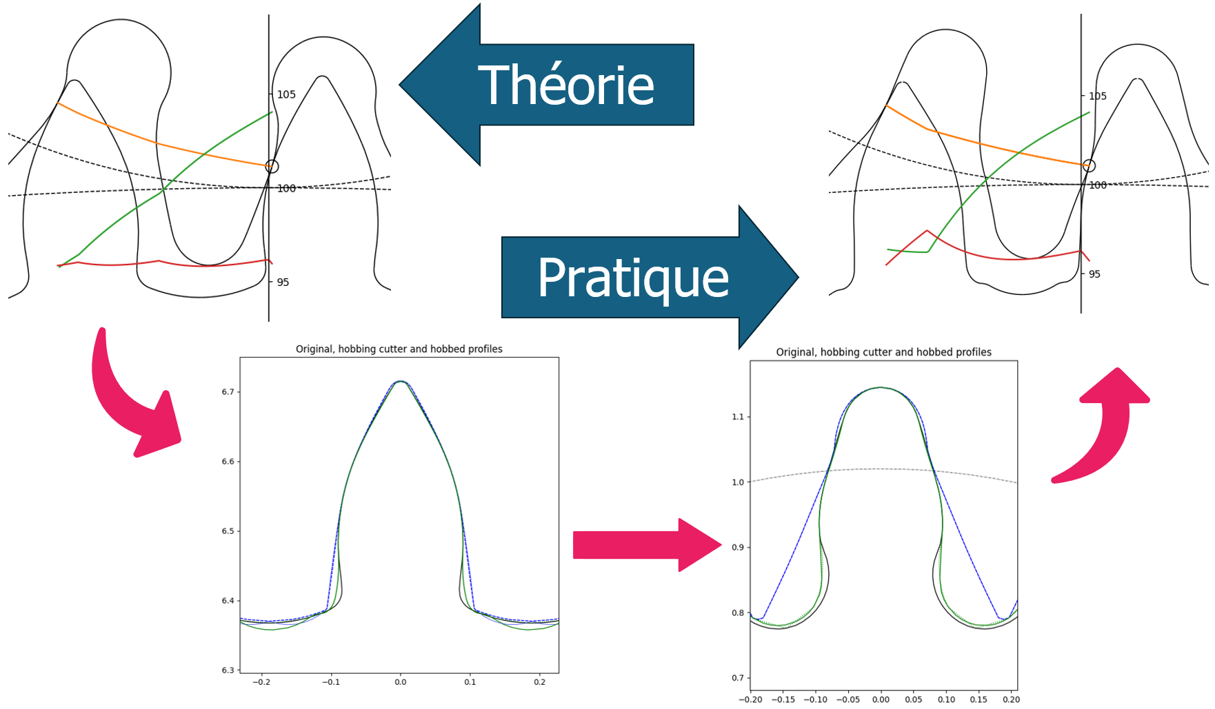 Le projet a résolu cette situation en ayant développé un outil numérique permettant de simuler, avant toute commande, le profil réel obtenu par taillage à partir du profil théorique. Le client peut ainsi visualiser les différences entre les deux formes et surtout anticiper leur impact sur la transmission mécanique — couple, vitesse, rendement. Cette simulation intègre également les tolérances de fabrication et les variations de processus, afin de proposer une vision réaliste et exploitable du profil usiné. L’utilisateur peut ainsi valider son design en toute connaissance de cause, en choisissant le compromis le plus adapté à ses besoins fonctionnels.