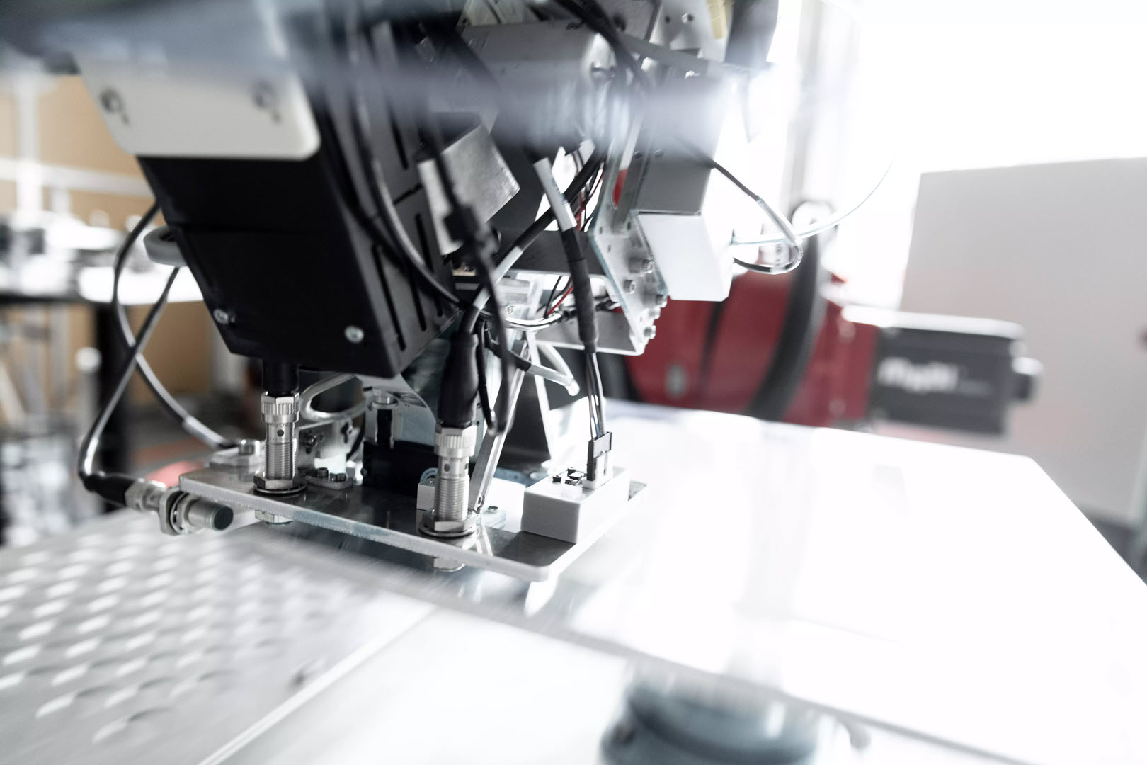 To enable printing onto large & heavy objects it is necessary to combine robot-moved printhead & static object. While this approach opens many new application areas the accelerated motion of the printhead results in key tech challenges to achieve high printing speed, precision, and reliability.