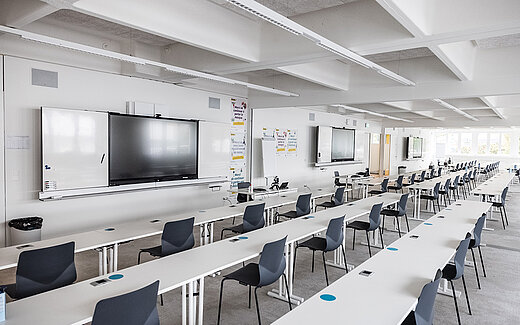 Les locaux disposent d’un grand espace ouvert, destiné aux travaux de groupe ou au travail personnel.