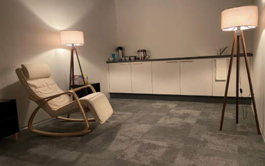 - Dans l'Espace C, vous trouverez, une salle pour l’allaitement et le repos des femmes enceintes. Cet espace cosy, nommé "Lactancia", est équipé d'un fauteuil, d'un évier, d'un frigo et de quoi s’hydrater. Cette salle est fermée à clef et peut se verrouiller de l’intérieur. Pour pouvoir y accéder, il est nécessaire de demander, (en passant sur place, via e-mail ou par téléphone) à la Réception de HES-SO Master. Un panneau permet d’indiquer si la salle est libre ou occupée.